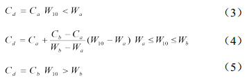 風(fēng)拖曳系數(shù)是海洋大氣物理學(xué)中的重要參數(shù),本次采用WuJin公式,即: