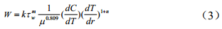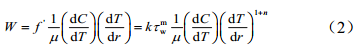 黃啟玉模型以分子擴(kuò)散機(jī)理為基礎(chǔ),同時(shí)考慮到了紊流狀態(tài)下流體對(duì)蠟沉積層的剪切作用,是一種具有普適性的蠟沉積動(dòng)力學(xué)模型。他認(rèn)為剪切彌散對(duì)蠟沉積的影響基本可以忽略。該模型中提出了“蠟沉積傾向系數(shù)”的概念,該系數(shù)考慮了管壁剪切應(yīng)力和管道徑向溫度梯度的影響。同時(shí)其他不確定因素,如蠟分子擴(kuò)散系數(shù)等,一并計(jì)入系數(shù)中,簡(jiǎn)化了計(jì)算步驟。蠟沉積傾向系數(shù)的表達(dá)式為:
