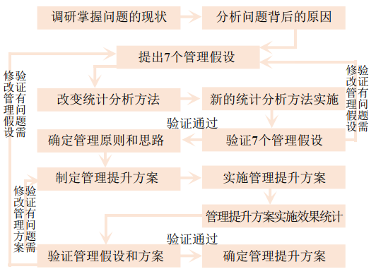 按照表 1分類,整理匯總分公司2019年2月至11月排查發(fā)現(xiàn)的1556項“低老壞”問題,分析得出統(tǒng)計結論,并反向驗證管理假設,確定整治原則和方案,制定整治措施。持續(xù)跟蹤記錄整治措施實施后的相關數(shù)據(jù)并統(tǒng)計分析,依據(jù)統(tǒng)計分析結果,不斷提升和完善管理假設和整治方案,形成閉環(huán)管理。整治流程分為12個步驟,如圖 1所示。