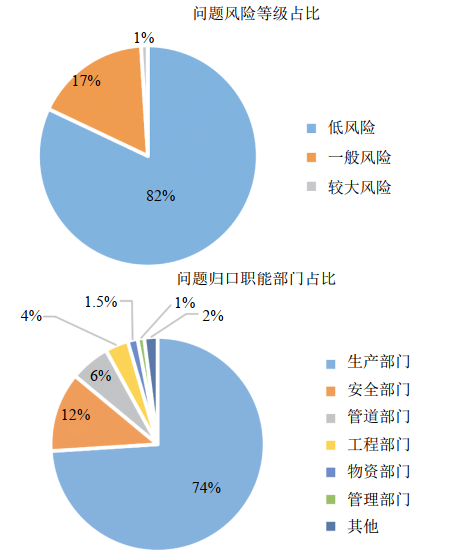 圖 3結果表明,“低老壞”問題風險較低是造成員工重視程度低、態(tài)度不積極的重要原因。問題大多歸口生產(chǎn)部門,其次是安全部門,采取針對性措施是實現(xiàn)有效整治的重要途徑。