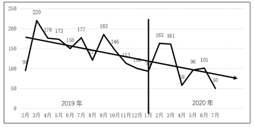 圖 6 2019年2月至2020年7月“低老壞”問題統(tǒng)計圖