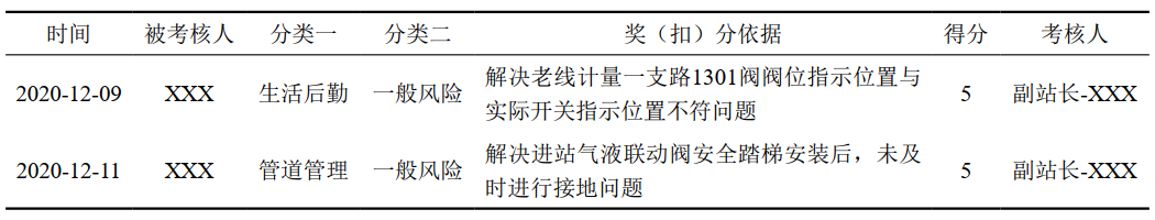 表 3 河口輸氣站試點積分制考核記錄表(示例)