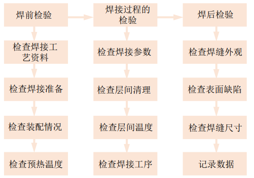 在焊接過程中進(jìn)行檢驗(yàn)時(shí),根焊質(zhì)量檢驗(yàn)非常關(guān)鍵,如發(fā)現(xiàn)點(diǎn)固焊或起焊位置有裂紋必須將裂紋處磨除,目視檢驗(yàn)徹底磨除后重新焊接,為下層焊道創(chuàng)造良好焊接環(huán)境。其次溫度測(cè)量應(yīng)距焊道50毫米才更有效,杜絕違反操作規(guī)程反方向焊接。