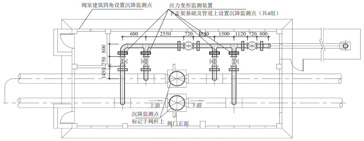 圖 2 閥室管道沉降監(jiān)測(cè)裝置布置示意圖