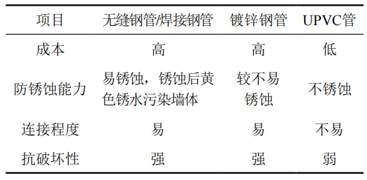 (5)常用套管材料及性能比較見(jiàn)表 1,目前以選用UPVC(硬PVC)管為主。