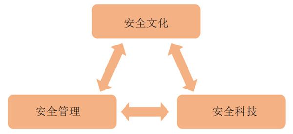 答:我們過(guò)去比較強(qiáng)調(diào)技術(shù)、管理雙輪驅(qū)動(dòng),現(xiàn)在進(jìn)一步認(rèn)識(shí)到,人員安全素質(zhì)也發(fā)揮了十分重要的作用。根據(jù)清華大學(xué)范維澄院士等一批公共安全領(lǐng)域?qū)<业淖钚吕碚摮晒踩卫眢w系和治理能力建設(shè)的支撐要素,是文化、科技和管理三足鼎立(圖 4)。