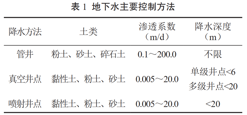 常見(jiàn)的地下水控制方法見(jiàn)表 1。