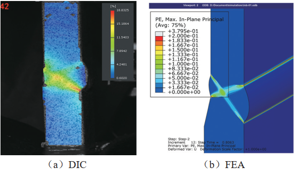 圖 4 DIC測(cè)試與有限元FEA模擬結(jié)果