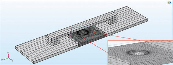 圖 2 凹坑缺陷模型及網(wǎng)格劃分