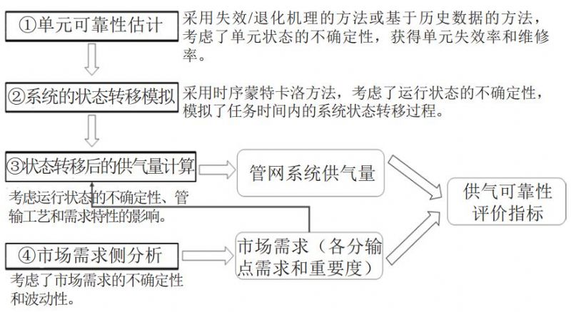 天然氣管網(wǎng)作為連接上游資源和下游市場的重要紐帶,是大規(guī)模輸送天然氣的唯一選擇,其可靠運行直接關(guān)系到天然氣的安全供應(yīng)。天然氣管網(wǎng)系統(tǒng)可靠性是指系統(tǒng)在規(guī)定時間內(nèi)、規(guī)定條件下(環(huán)境條件、使用條件等)完成規(guī)定任務(wù)的能力[1]。因此,需要針對天然氣管網(wǎng)的系統(tǒng)特征,建立天然氣管網(wǎng)系統(tǒng)可靠性計算和評價的方法,為系統(tǒng)可靠性理論發(fā)展、工程應(yīng)用提供技術(shù)支撐,從而更好地保障天然氣管網(wǎng)的本質(zhì)安全和供氣安全。本文所指系統(tǒng)可靠性亦稱供氣可靠性。