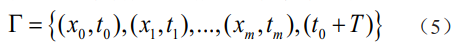 式中,(xi,ti)表示第 i 次狀態(tài)轉(zhuǎn)移發(fā)生在ti時刻,且轉(zhuǎn)移后的系統(tǒng)狀態(tài)為xi,(x0,t0)為當(dāng)前系統(tǒng)狀態(tài),T為持續(xù)時間,(t0+T)表示最后一次轉(zhuǎn)移所處時刻。