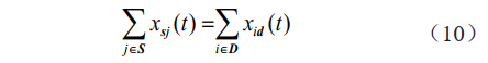 式中,T為任務(wù)時間;day,t為時刻,day;D為需求點的集合;d為虛擬匯點;xid( t )表示 t 時刻,需求點到虛擬匯點的流量,即管網(wǎng)供給第 i 個需求點的氣量,104 Nm3/day;Pir( t )為各個需求點的用戶重要度。
