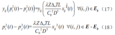 式中,Eb表示雙向管道的集合,yij( t )為控制 t 時刻雙向管道流向的二元決策變量。