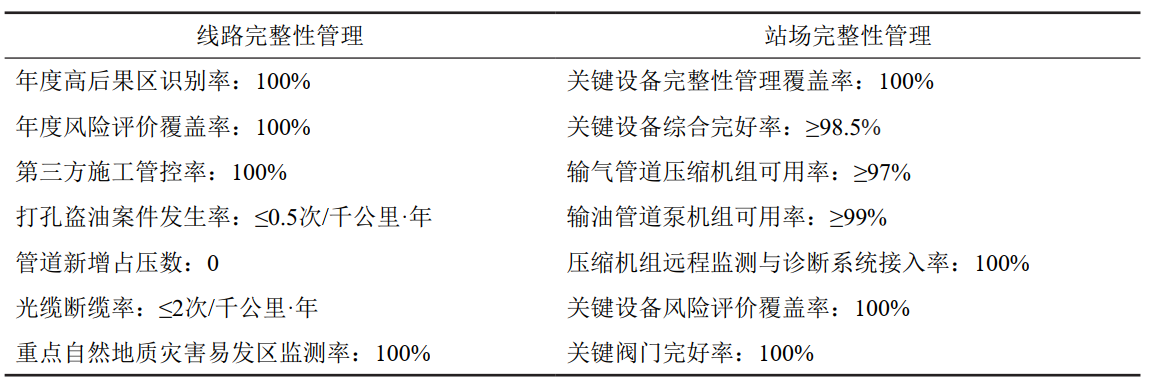 表 1 管道資產(chǎn)完整性管理業(yè)務(wù)指標(biāo)