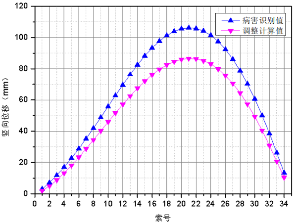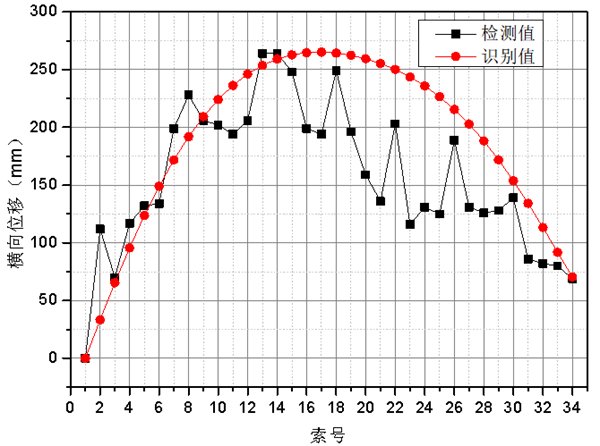 圖 4 主梁橫向偏位檢測(cè)值與識(shí)別值對(duì)比