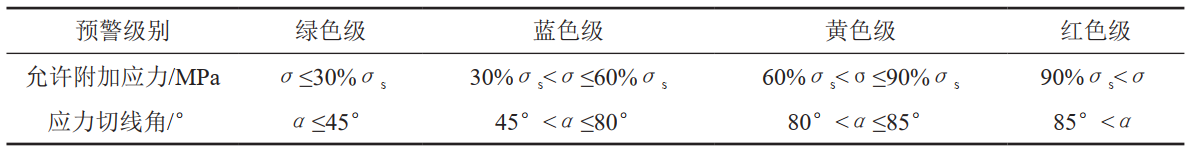 Q/SY 1673―2014《油氣管道滑坡災(zāi)害監(jiān)測規(guī)范》對管道附加應(yīng)力的預(yù)警準(zhǔn)則規(guī)定,當(dāng)管道附加應(yīng)力σ超過允許附加應(yīng)力σs 的30%、60%、90%時分別發(fā)布藍(lán)色預(yù)警、黃色預(yù)警和紅色預(yù)警。