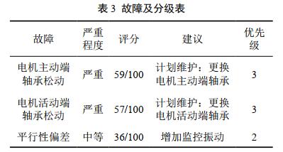 本次振動(dòng)測量最大峰值為3.63 mm/s,階次約2.01x(x為轉(zhuǎn)速),位于測點(diǎn)1切向方向的高頻范圍內(nèi)。其診斷結(jié)果和維修維護(hù)建議如表 3所示。
