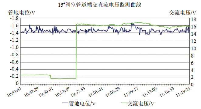 圖 2 15#閥室管道端交直流電壓監(jiān)測曲線