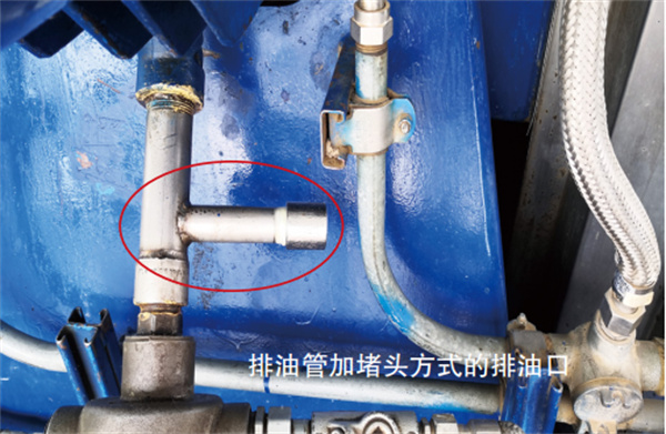 (5)連接管尺寸根據(jù)潤滑油箱到泵基座的高度確定,長度可為40 cm~50 cm,確保出油口距泵基座的距離為40 cm~50 cm,方便收集排出的潤滑油。