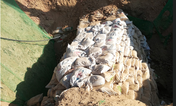 圖 2 管道應力監(jiān)測及沙袋穩(wěn)管措施