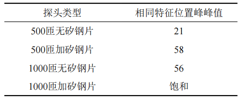表 1 不同探頭類型缺陷信號(hào)捕捉強(qiáng)度試驗(yàn)結(jié)果