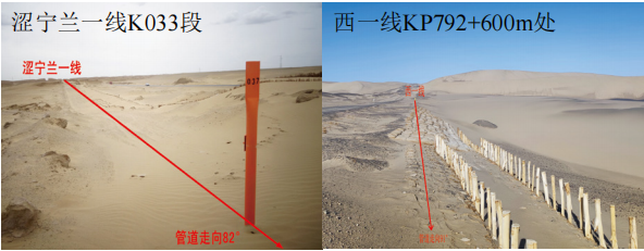 圖 2 西一線庫木塔格沙壟段露管現(xiàn)場及應(yīng)急處置