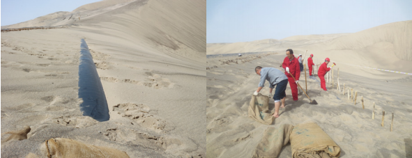 圖 6 沙袋固沙及柵欄阻沙綜合防護
