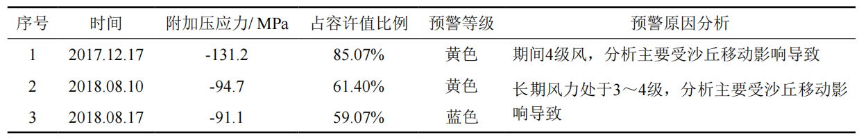 最新監(jiān)測周期內(nèi),KP788-KP793管段應(yīng)力監(jiān)測值均未達(dá)到設(shè)定的監(jiān)測預(yù)警級別,管道應(yīng)力處于可接受范圍。由于管體溫度上升,附加壓應(yīng)力增大;管體溫度下降,附加拉應(yīng)力增大。X4截面處管道受季節(jié)性強風(fēng)的風(fēng)蝕沙埋影響較為明顯,需持續(xù)關(guān)注該監(jiān)測單元管道應(yīng)力變化情況。