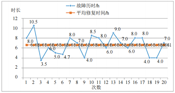從圖 3所列20起斷纜修復(fù)時(shí)長統(tǒng)計(jì)看,平均需要6.61小時(shí),意味著相關(guān)聯(lián)的站場(chǎng)、閥室的生產(chǎn)數(shù)據(jù)在至少6.61小時(shí)內(nèi)可能處于失控狀態(tài),對(duì)自動(dòng)化程度居高的閥室、站場(chǎng)以及長輸管道安全運(yùn)行造成嚴(yán)重威脅。