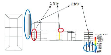 ②陰極保護電位負于鋅包鋼自然電位。當水平接地體為低碳鋼時,控制陰極保護電位負于﹣1.15 VCSE,陰極保護系統(tǒng)需輸出電流4.8 A達到原輸出電流的3倍,鋅包鋼會吸收陰極保護系統(tǒng)電流,顯著增加陰極保護系統(tǒng)的負擔。管道電位分布云如圖 6所示。