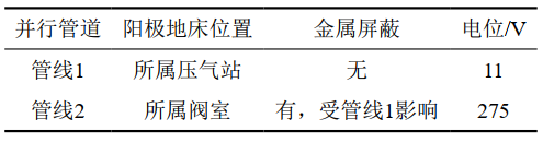 表 2 并行管道陽極場金屬屏蔽影響對比