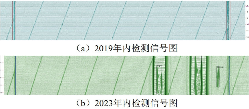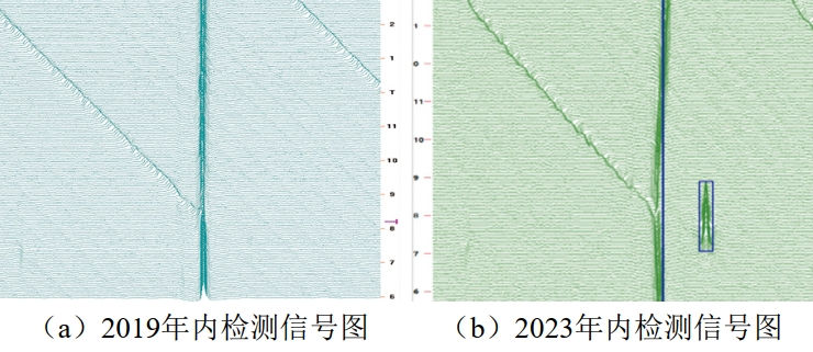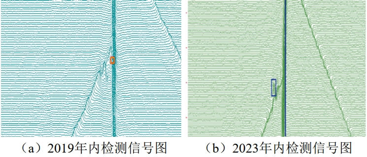 (2)單純通過內(nèi)檢測數(shù)據(jù)列表進(jìn)行對齊可能造成部分缺陷無法匹配。可以通過對重點(diǎn)特征內(nèi)檢測原始信號圖進(jìn)行人工匹配,作進(jìn)一步分析。