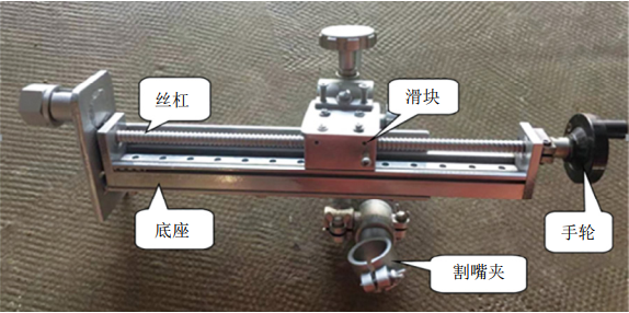 切割斜口時(shí)為使切割機(jī)的槍嘴隨時(shí)沿著事先畫出的斜口切割線運(yùn)動(dòng),需要隨時(shí)調(diào)整槍嘴位置,避免偏離切口線,且在調(diào)節(jié)時(shí)要特別順滑不能卡頓,因?yàn)闈L珠滑塊與螺旋絲杠的連接既緊密又順滑,所以在轉(zhuǎn)動(dòng)手輪帶動(dòng)滑塊運(yùn)動(dòng)時(shí),非常穩(wěn)定,可操作性極強(qiáng),從而能切割出優(yōu)質(zhì)的斜口。