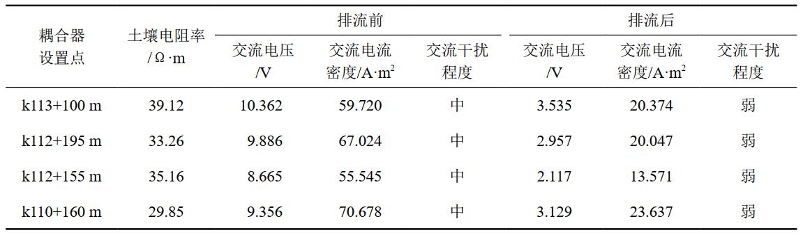 表 1 京滬高鐵穿越段管道交流干擾排流效果