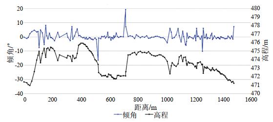 根據(jù)管道走向位置與地形等因素確定管道高程測(cè)量點(diǎn)的水平間距,以此反映管道所有實(shí)際傾角變化。依據(jù)計(jì)算結(jié)果繪制管道實(shí)際傾角剖面圖(圖 2)。