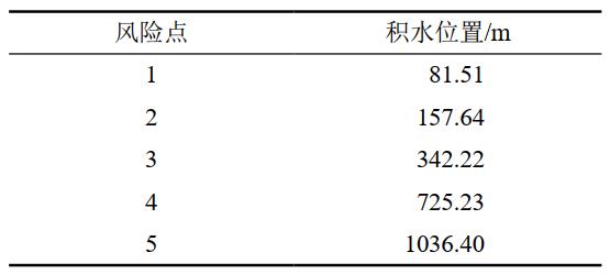 沿程含水率最高的幾處,即管道發(fā)生積水概率較大位置。從圖 3、圖 4可知,該輸油管道積水風(fēng)險(xiǎn)較大位置見(jiàn)表 2,距離表示距管道起點(diǎn)的長(zhǎng)度。