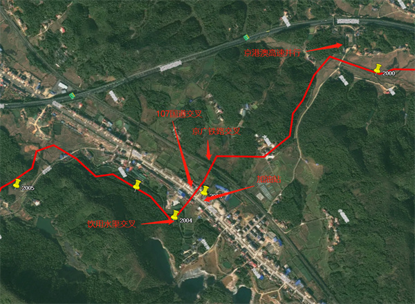 圖 2 輸油管道穿越村莊、高速公路、河流示意圖
