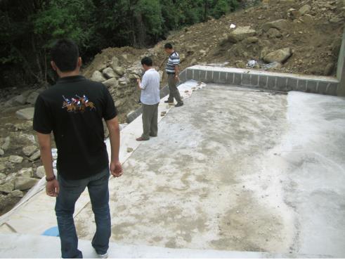 B穿越河流處,曾采用護岸墻+漿砌石過水路面形式防護,這次也因暴雨形成的水石流造成過水路面沖毀、左岸護岸墻前緣掏蝕嚴重及右岸護岸墻損毀殆盡(圖 3)。