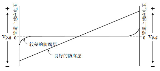 圖 3 較差防腐層與良好防腐層管道典型的地磁感應(yīng)電位分布曲線