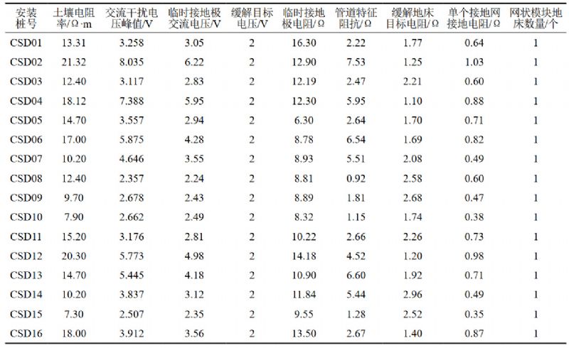 表 1 交流干擾緩解網狀地床安裝位置及參數指標