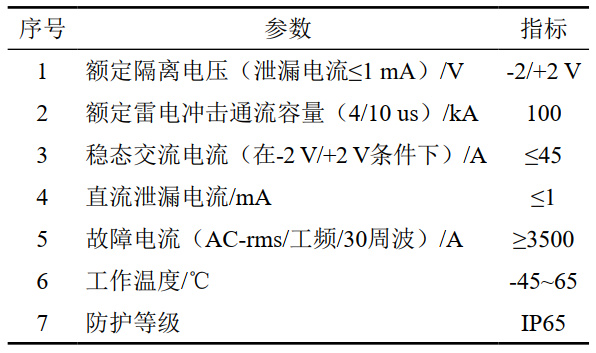 固態(tài)去耦合器起到通交隔直作用,以排除管道交流干擾電壓,其性能參數如表 2所示。