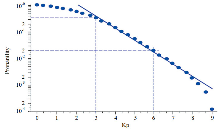 圖 1 不同Kp指數(shù)等級(jí)地磁活動(dòng)的平均發(fā)生率
