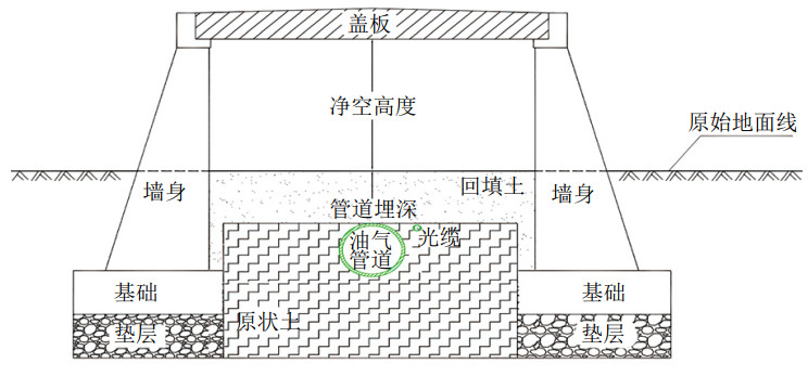 (3)提升了管道安全性。相較傳統(tǒng)蓋板涵,增加了側(cè)墻與管道凈間距,一方面減小側(cè)墻開挖、澆筑等作業(yè)過程中管道意外損傷的風(fēng)險,另一方面減小了道路運營過程中交變載荷對管道的影響,提升了管道及其附屬設(shè)施的安全性[7]。