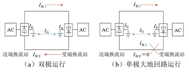 圖 1 高壓直流輸電系統(tǒng)接地極運(yùn)行方式原理