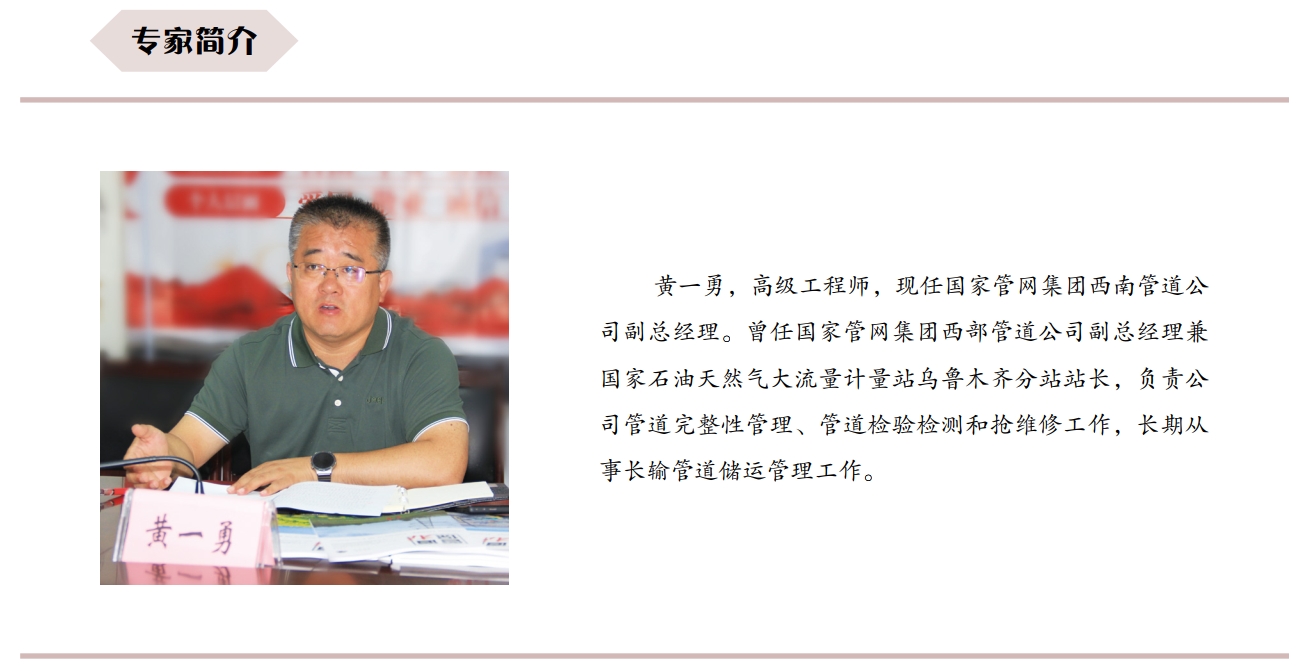 《管道保護(hù)》編輯部:近年來(lái),國(guó)家管網(wǎng)集團(tuán)西部管道公司深入貫徹落實(shí)習(xí)近平總書(shū)記“四個(gè)革命、一個(gè)合作”能源安全新戰(zhàn)略,把保障國(guó)家能源安全作為神圣使命,在油氣管道安全防護(hù)領(lǐng)域不斷探索形成符合公司實(shí)際、具有自身特色的做法。本期特別邀請(qǐng)到西部管道公司原副總經(jīng)理、黨委委員黃一勇,就如何建設(shè)、運(yùn)營(yíng)和守護(hù)我國(guó)西部能源戰(zhàn)略大通道這一話題,暢談體會(huì)和經(jīng)驗(yàn)。郵箱:guandaobaohu@163.com。