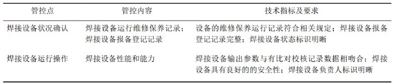 表 3 焊接設(shè)備的質(zhì)量關(guān)鍵點(diǎn)