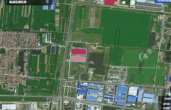 接入全省亞米級衛(wèi)星遙感影像數(shù)據(jù),每月開展一次覆蓋全省范圍的遙感影像數(shù)據(jù)解譯工作,通過遙感解譯識別技術(shù)提取變化圖斑,監(jiān)測中心線兩側(cè)5~200米范圍內(nèi)地形地貌變化情況。利用目標檢測模型對隱患區(qū)域檢測識別建構(gòu)筑物占壓、挖掘施工作業(yè)等隱患。以圖斑疊加于管道數(shù)據(jù)底圖的形式顯示管道周邊占壓、第三方施工等安全隱患情況,服務于管道風險隱患識別、高后果區(qū)認定等業(yè)務。圖 2紅色圖斑為中心線兩側(cè)5~200米范圍內(nèi)解譯識別出來的建筑物占壓。圖 3所示為不同期影像分屏對比,將當期解譯影像與往期影像結(jié)合,查看建筑物占壓歷史變化情況,提升了管道排查的效率和準確性。