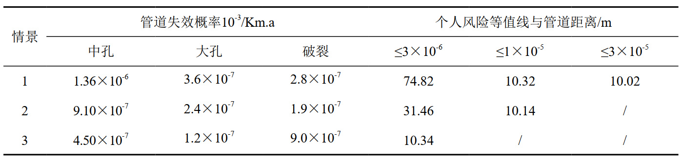 表 1 不同管道失效概率下的個(gè)人風(fēng)險(xiǎn)