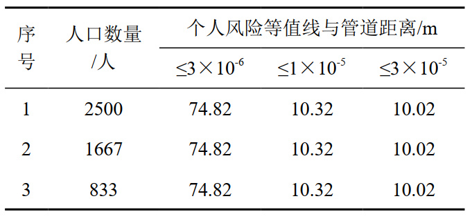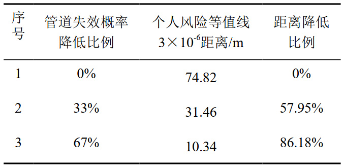 以個(gè)人風(fēng)險(xiǎn)等值線3×10-6這組數(shù)據(jù)為例進(jìn)行分析,如表 2。