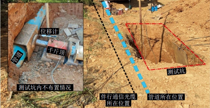 圖 3 千斤頂推動管道及同溝的伴行光纜側(cè)向位移
